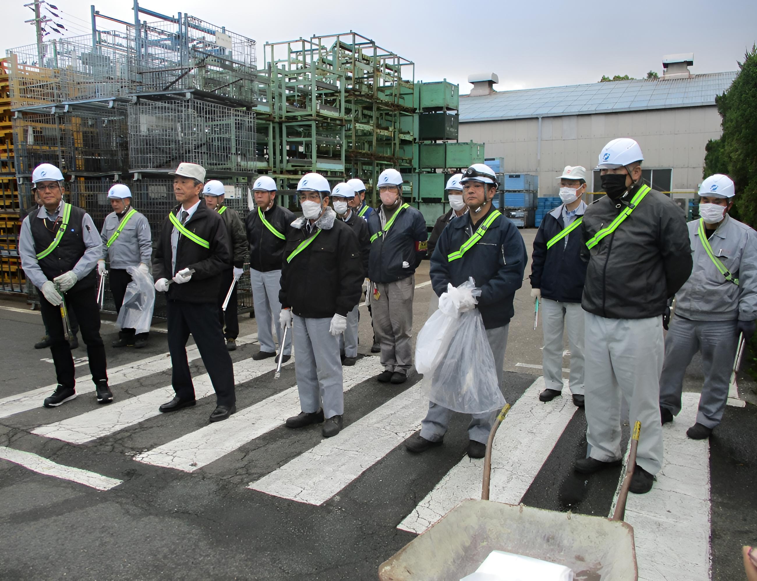 | 美和製作所では社会貢献活動の一つとして会社周辺の清掃活動を実施しています。 今回も開始時刻に雨が降り心配でしたが、その後青空になり、予定通り実施できました。 持続可能な社会の実現と地域の未来のために今後も活動していきます。 |